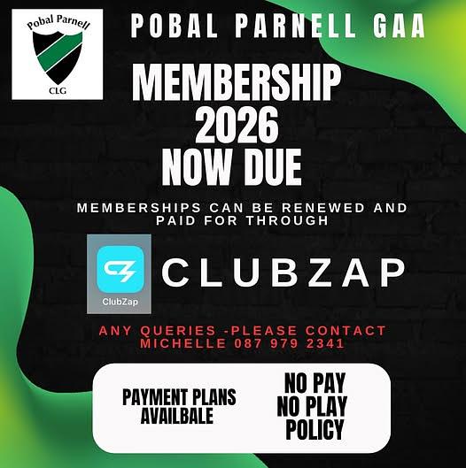This season due to Gaa and Lgfa insurance rules there will be No Pay, No Play policy from March 31st (closing date)