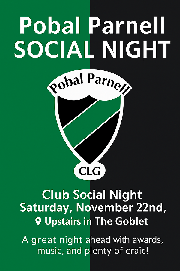 This promises to be a brilliant evening as we come together to celebrate a fantastic year for Pobal Parnell GAA β on and off the pitch! ππ€