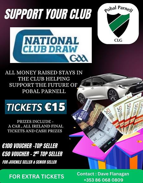 Tickets are €15 each and are available through your teams now or contact contact Dave Flanagan on 086 068 0809 to order tickets. Revolut payment is also available.